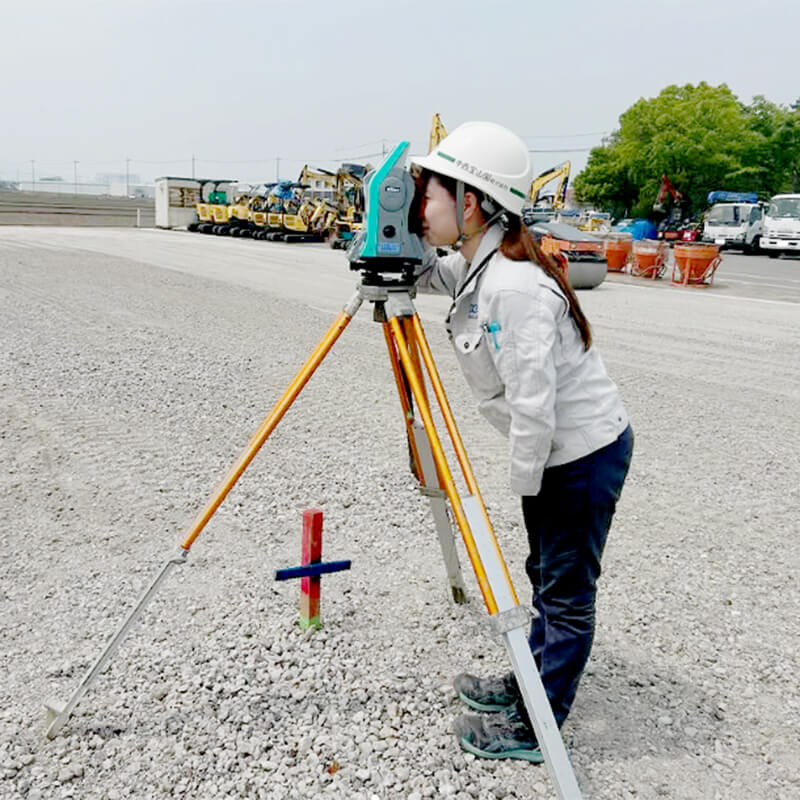 現場管理が主な仕事です。造成工事をはじめ、企業の外構工事、市や県発注の道路の舗装修繕、道路改良工事など担当しています。