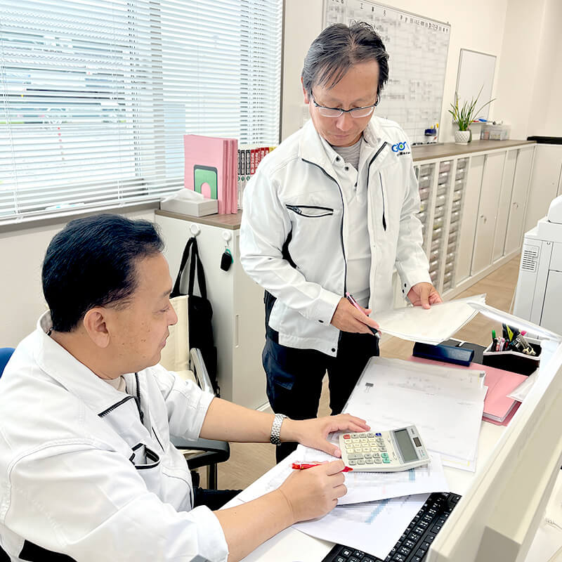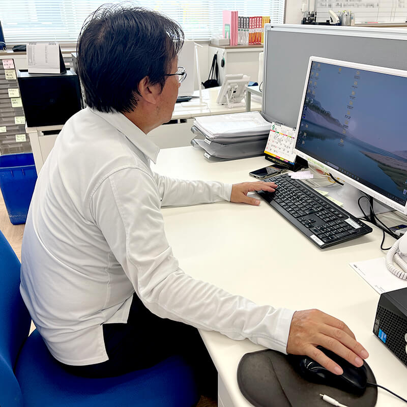 入社後約25年、主に民間住宅の外構工事の現場管理と設計・見積に従事し、工事部から転籍して3年ほどになりますが、現場での経験を生かした営業を心掛けています。